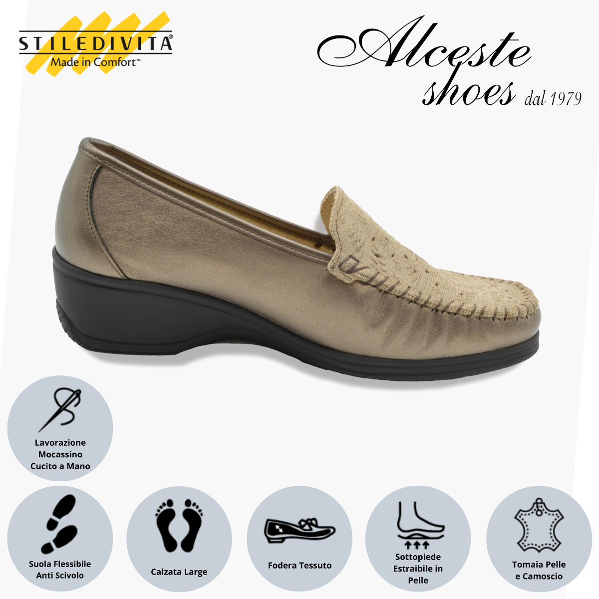 Mocassino Traforato Donna “Stiledivita” Art. 2363 Pelle e Camoscio Bronzo