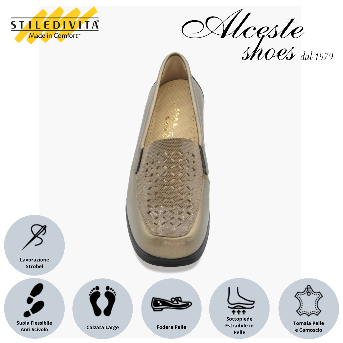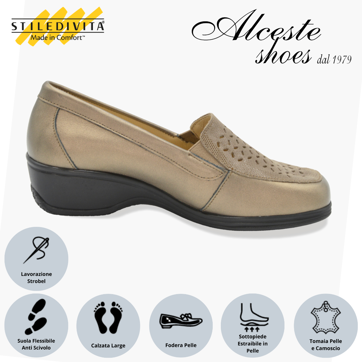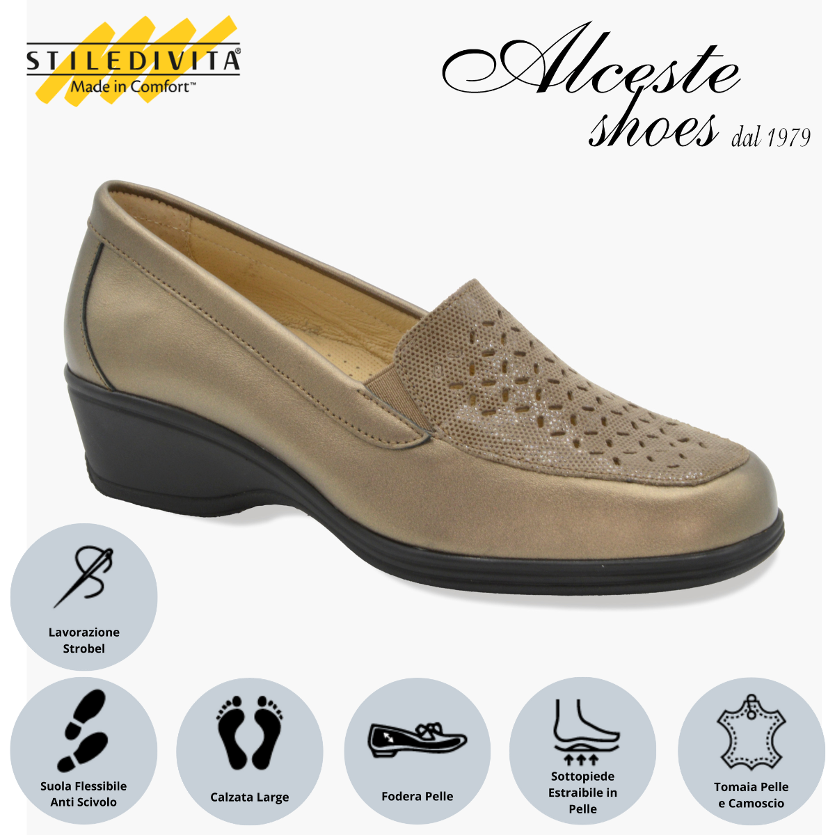 Mocassino Traforato Donna “Stiledivita” Art. 9146 Pelle Bronzo e Camoscio Taupe